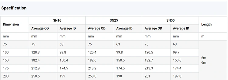 5.Apput de la flexibilité et de la rigidité: sa structure ondulée à paroi unique offre à la fois la traction et la résistance à la compression, permettant au tuyau de s'adapter à la colonie du sol ou à la déformation sismique.
